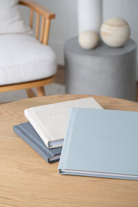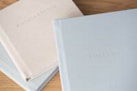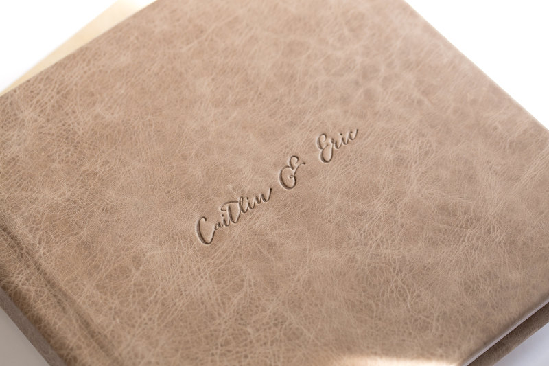 When deciding on the album and keepsake box finishes, I always consider the personality and design style of the couple. To keep it simple, you could pick an album cover that matches your wedding color palette, or for a timeless pairing, you could go for a classic wren taupe or dove grey finish. Sometimes, though, it’s best to think of where the heirlooms will be stored and displayed. What kind of finishes will make them look like they’re right at home?